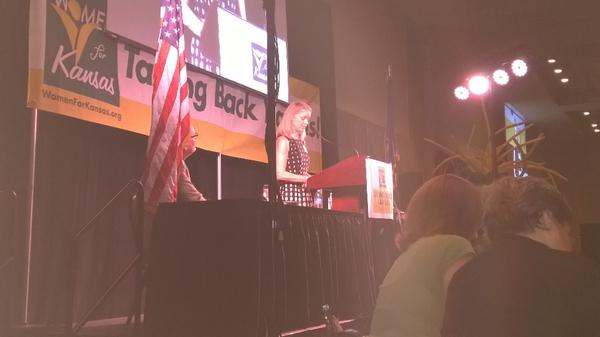 12:35 PM PT: "Sam Brownback is a bully. In added states, they attending to us and say 'don't be like Kansas'. I'm saying: let's be the Kansas we should be. Change our accompaniment this November."